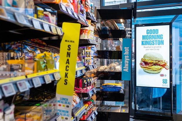 Opening in Clarence Street, Kingston, Co-op’s ‘on the go’ store is focussed on serving breakfast, lunch and dinner in exciting new formats, from traditional meal deals to the inclusion of a hot food serve-over counter, coffee, pastries, pizza and, deli-inspired selections.